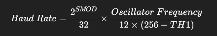 - SMOD (Bit 7): Doubles the baud rate when set to 1.